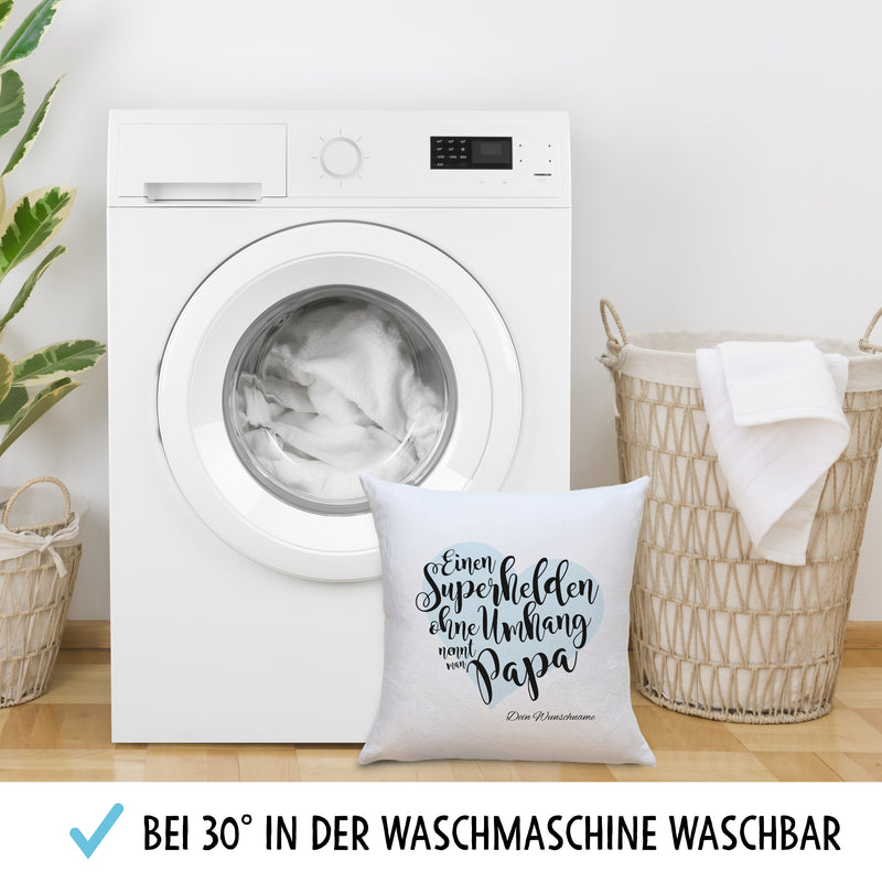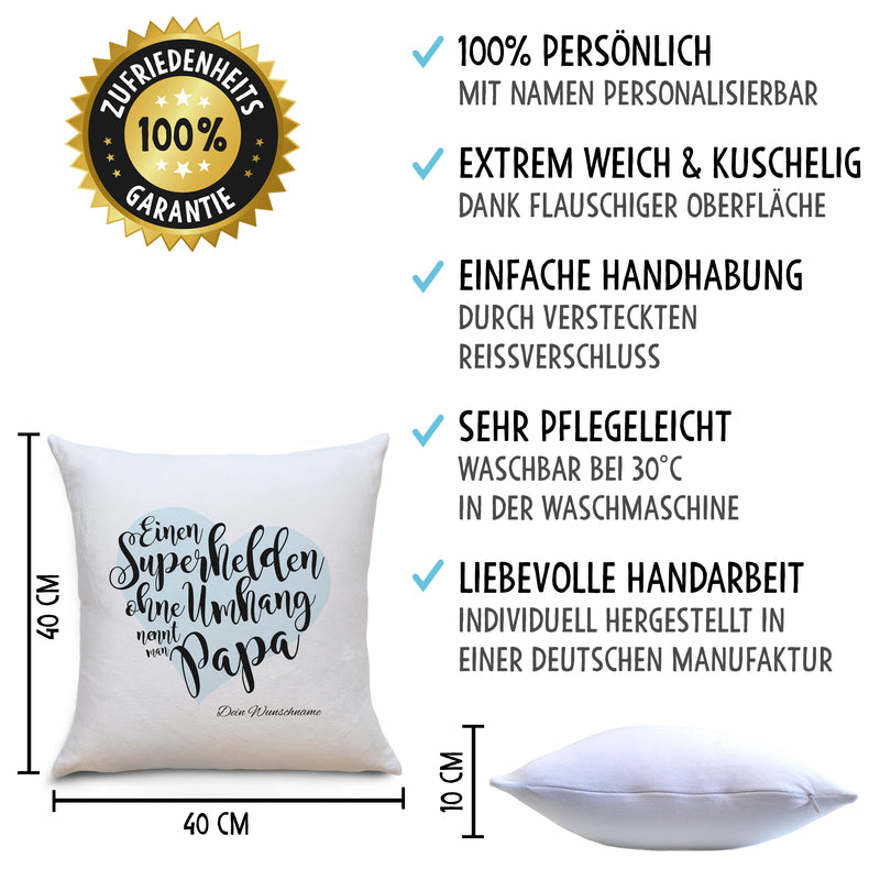Superheld Papa Flauschiges Kissen mit Motiv Personalisiert mit Namen Geschenke Geschenkideen für Papa zum Geburtstag Weihnachten Zierkissen mit Füllung
