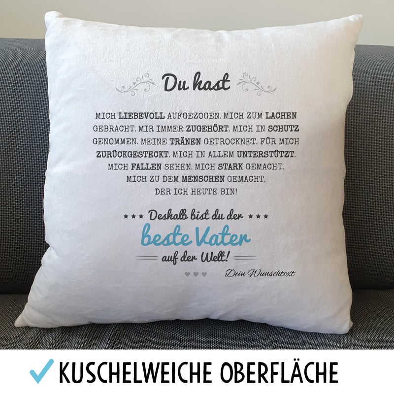 Bester Papa Flauschiges Kissen mit Spruch Personalisiert mit Namen Geschenke Geschenkideen für Papa zum Geburtstag Weihnachten Zierkissen mit Füllung
