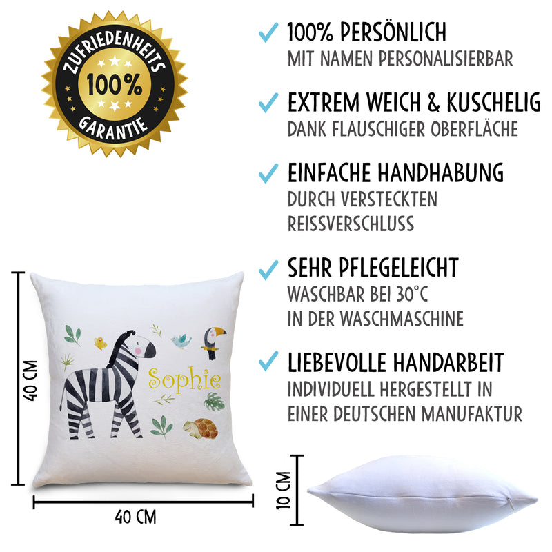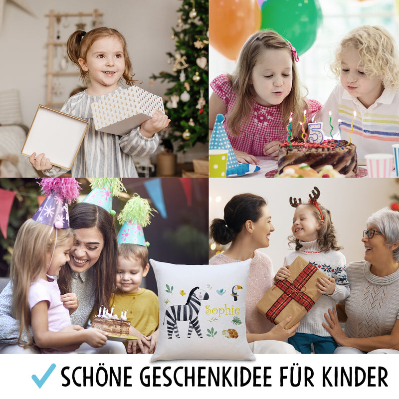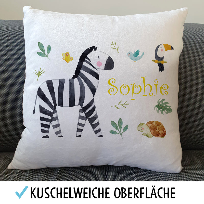 Zebra Safari Tiere Flauschiges Kissen mit Füllung Personalisiert mit Namen Geschenke Geschenkideen für die Familie zum Schwangerschaft verkünden Weihnachten