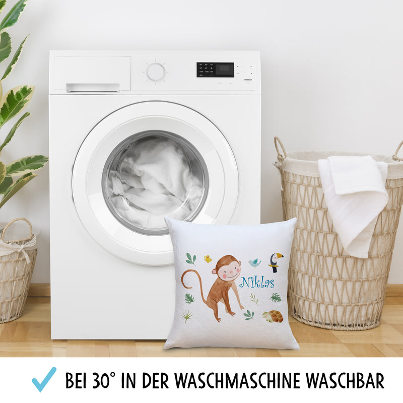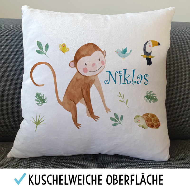 Kinderkissen Affe Safari Tiere Flauschiges Kissen mit Füllung Personalisiert mit Namen Geschenke Geschenkideen für Jungs Jungen zum Geburtstag Weihnachten