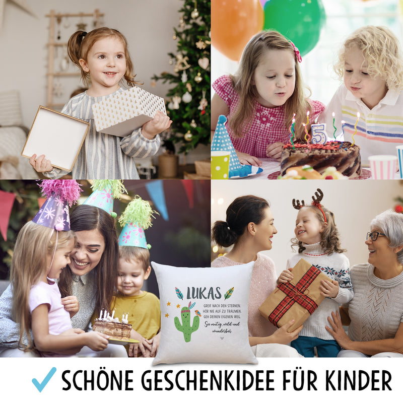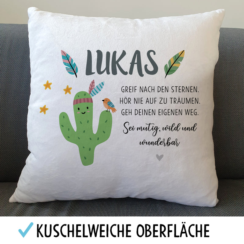Kinderkissen Kaktus Boho Flauschiges Kissen mit Füllung Personalisiert mit Namen Geschenke Geschenkideen für die Familie zum Schwangerschaft verkünden Weihnachten
