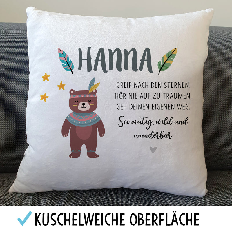 Bär Boho Flauschiges Kissen mit Füllung Personalisiert mit Namen Geschenke Geschenkideen zur Geburt für Mädchen oder Junge zum Schwangerschaft verkünden