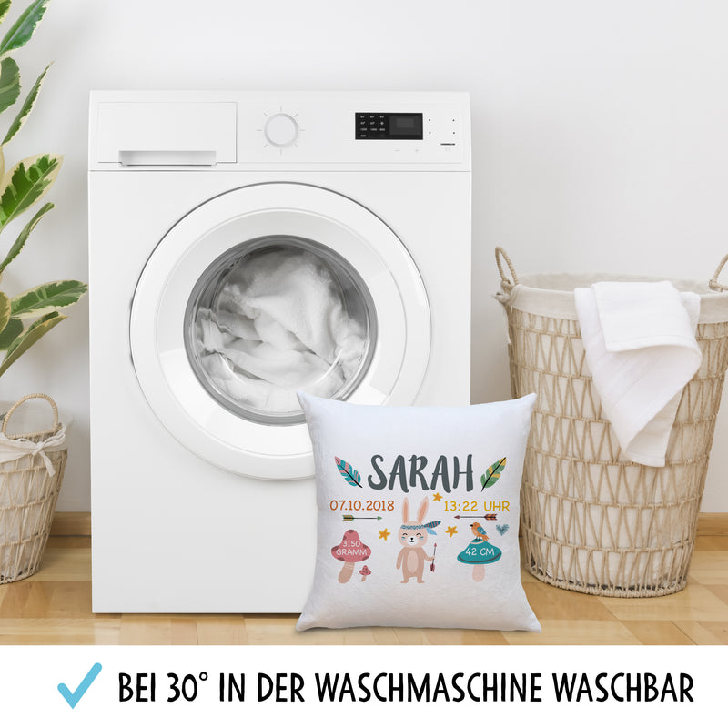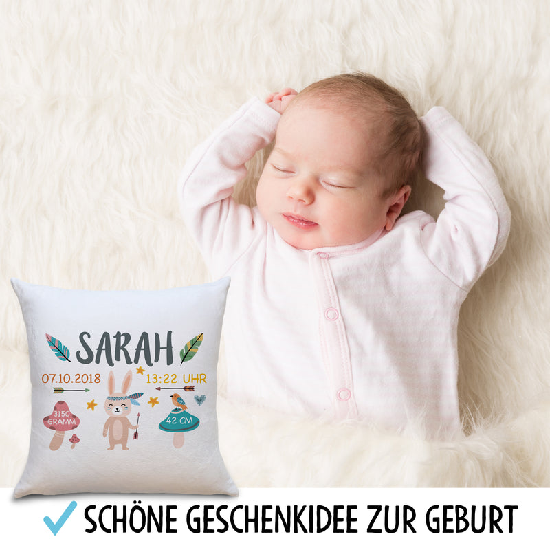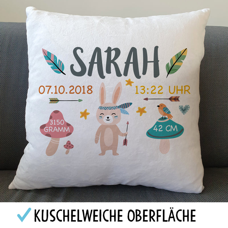 Geburtskissen Hase Boho Flauschiges Kissen mit Namen und Geburtsdaten Geschenke Geschenkideen zur Geburt für Mädchen oder Junge als Glückwünsche