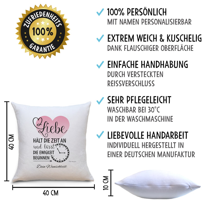Liebe hält die Zeit an Flauschiges Kissen mit Sprüchen Liebe Personalisiert mit Namen Geschenke Geschenkideen für Liebespaare zum Geburtstag Zierkissen mit Füllung