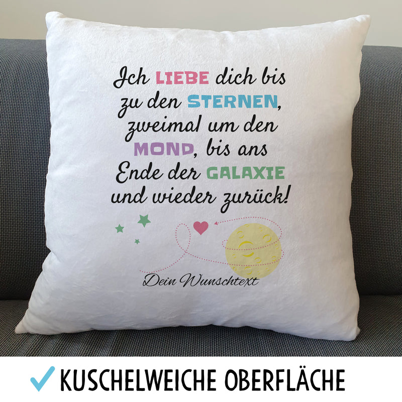 Liebe um den Mond Flauschiges Kissen mit Liebesbotschaft Personalisiert mit Namen Geschenke Geschenkideen für Liebespaare zum Geburtstag Zierkissen mit Füllung