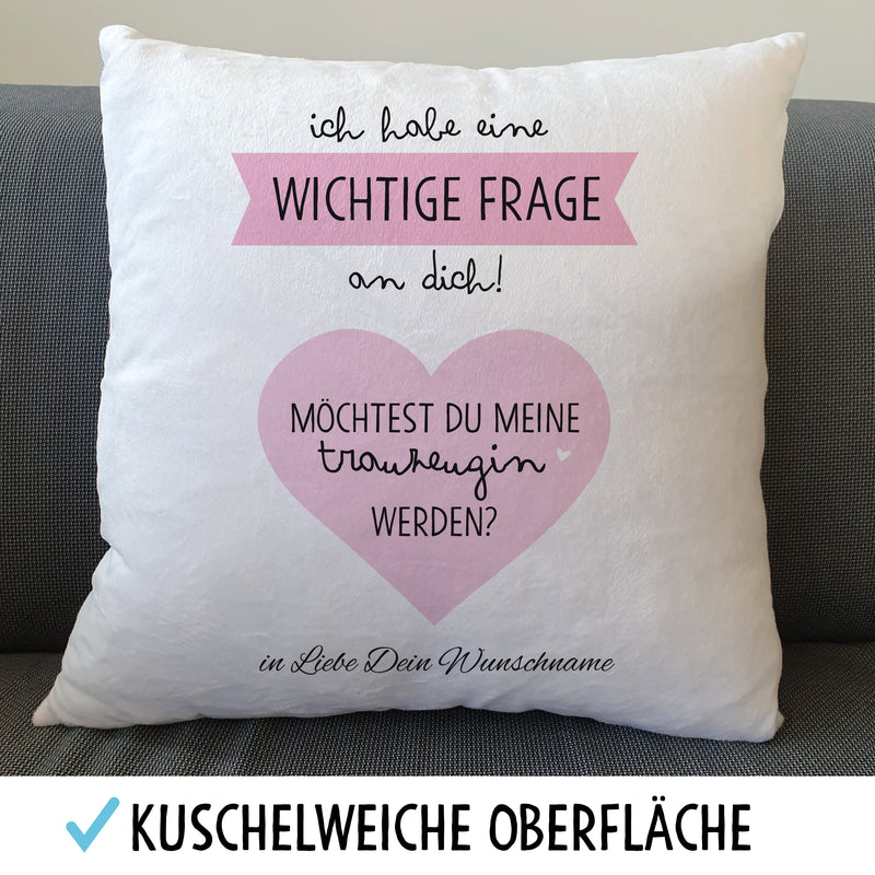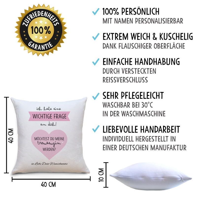 Trauzeugin Fragen Flauschiges Kissen mit Aufdruck Personalisiert mit Namen Geschenke Geschenkideen für Trauzeugin zur Hochzeit & Verlobung Zierkissen mit Füllung