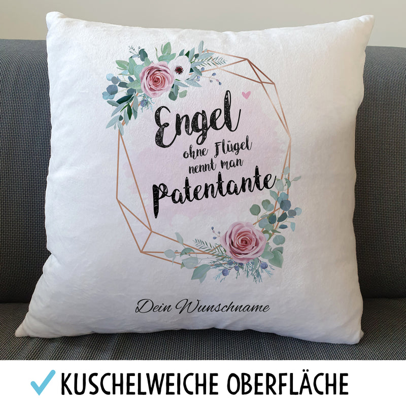 Engel Patentante Flauschiges Kissen mit Aufdruck Personalisiert mit Namen Geschenke Geschenkideen für Patentante Patin zum Geburtstag Weihnachten Zierkissen mit Füllung