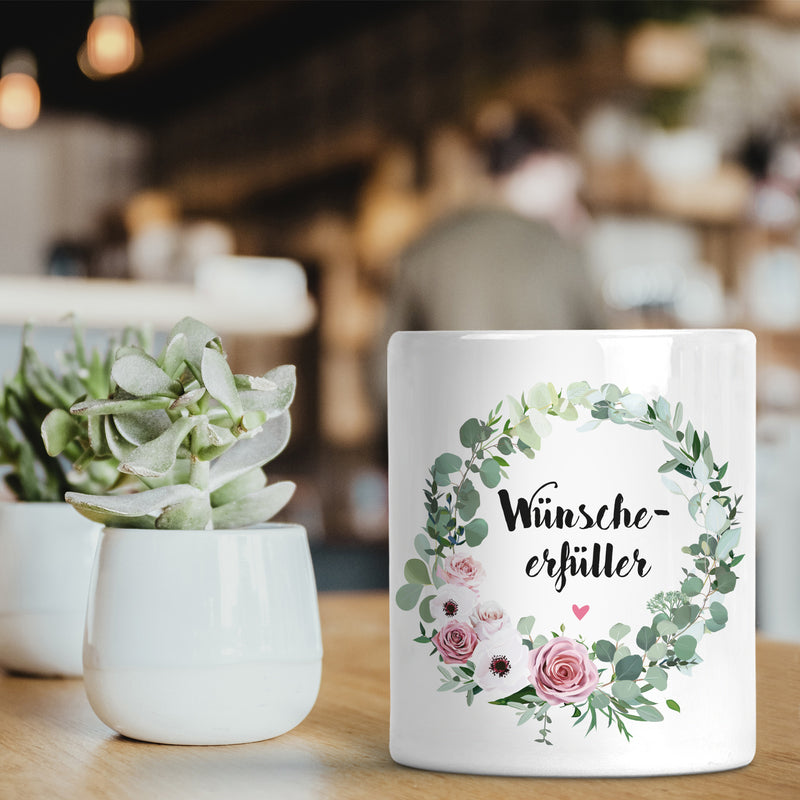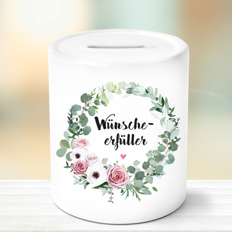 Wünscheerfüller mit Blumenkranz Spardose Personalisiert mit Namen Geldgeschenke Geschenkideen für das Brautpaar zur Hochzeit Weihnachten