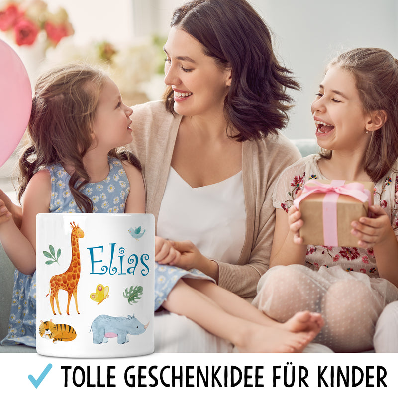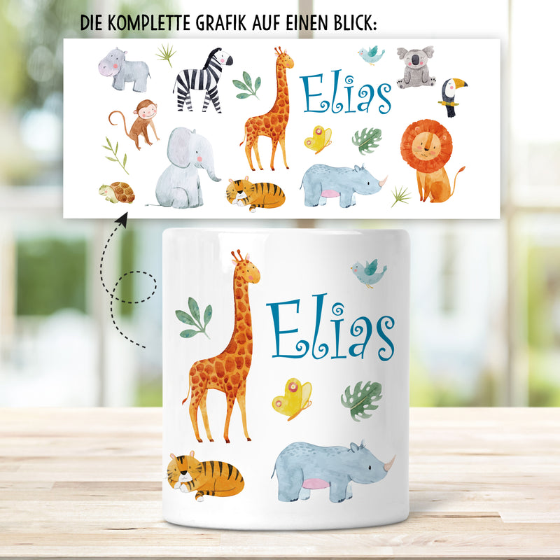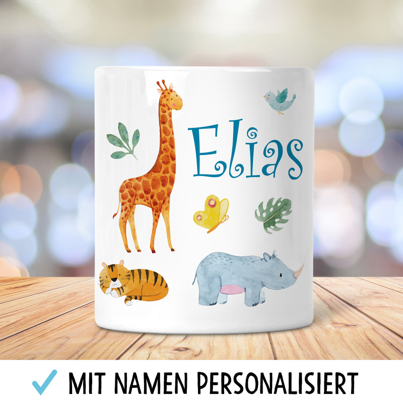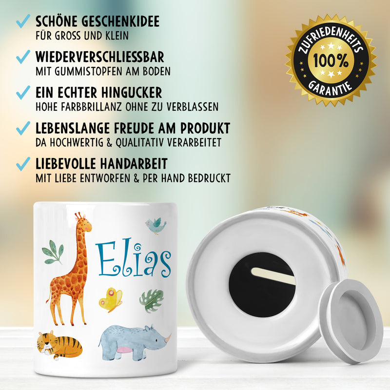 Safari Tiere Kinder Spardose Personalisiert mit Namen Geschenke Geschenkideen für Kinder und Baby zum Geburtstag Weihnachten Einschulung Taufe Geburt Sparschwein