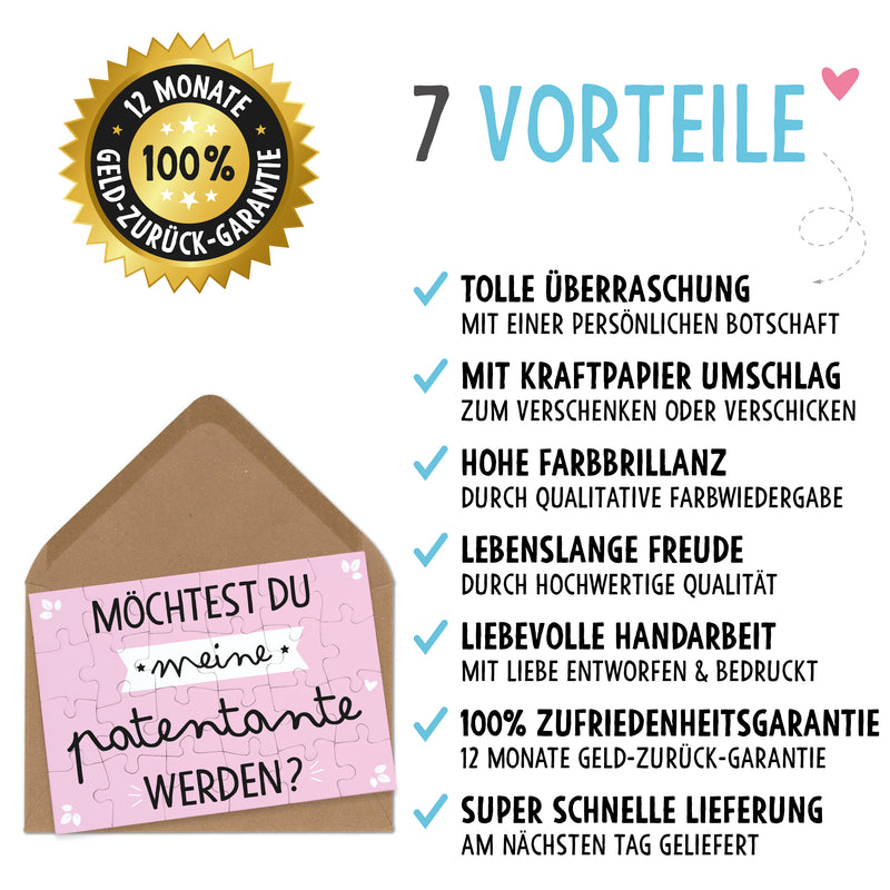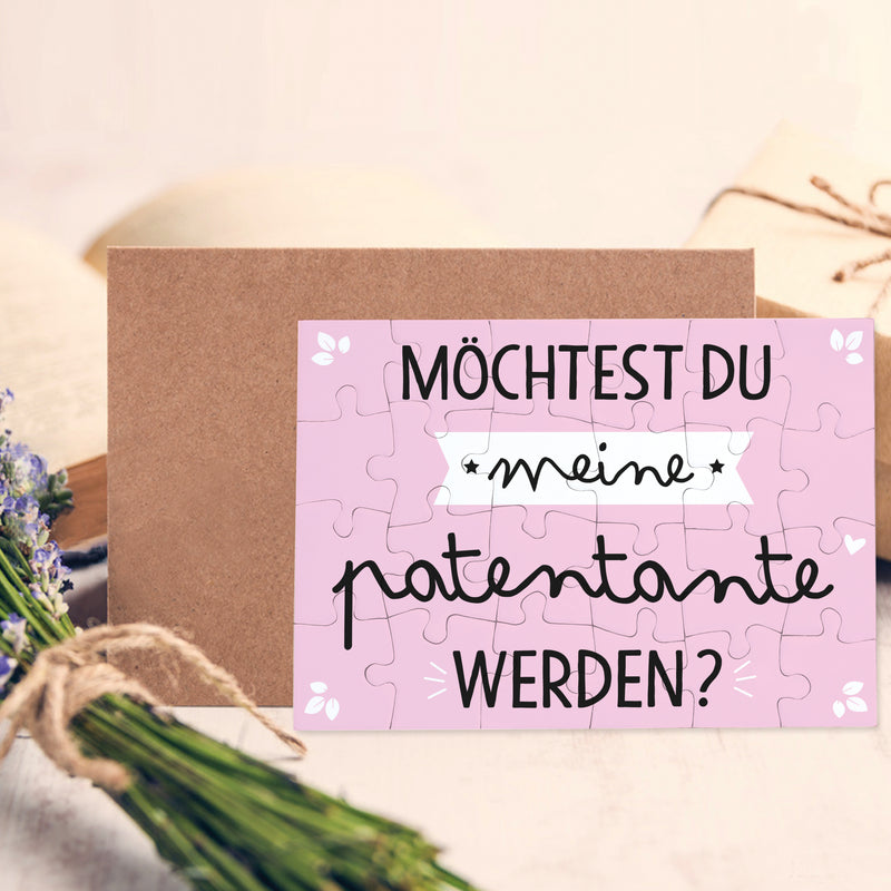Patentante Fragen Puzzle besondere Frage Paten mit Brief-Umschlag Geschenke Geschenkideen für Patentante zur Geburt & Schwangerschaft zur Taufe