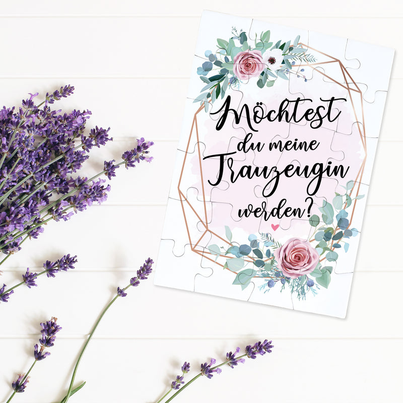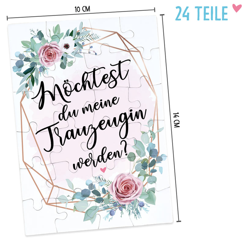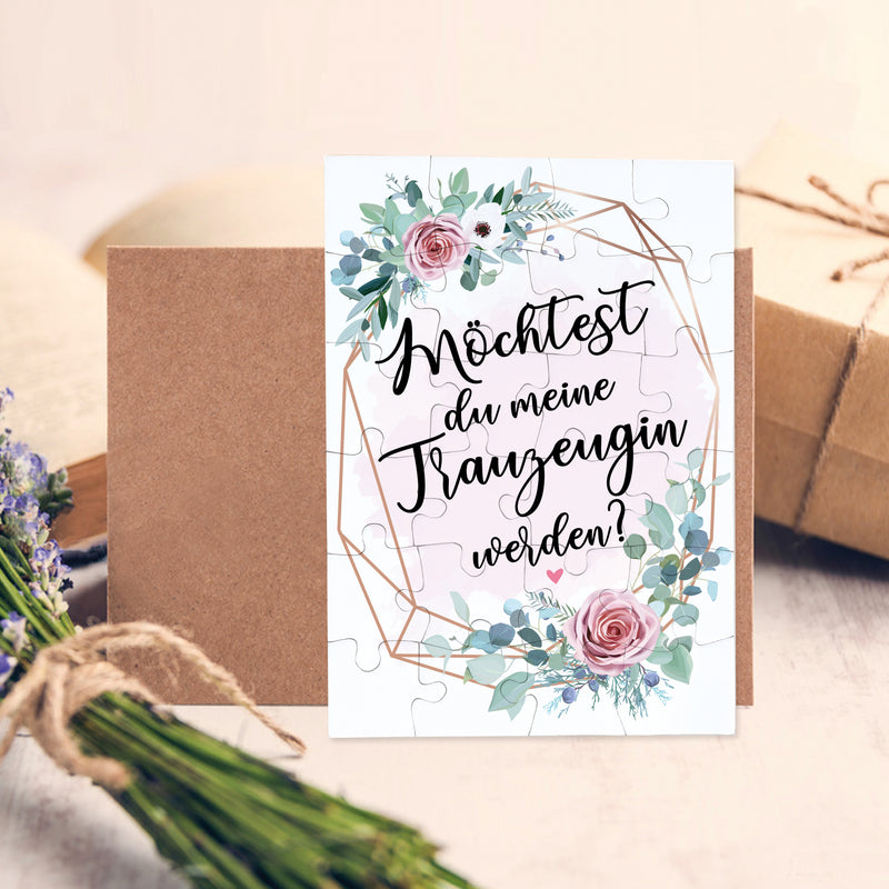 Trauzeugin Fragen rosa Blumenkranz Puzzle besondere Frage Hochzeit mit Brief-Umschlag Geschenke Geschenkideen für Trauzeugin zur Hochzeit & Verlobung