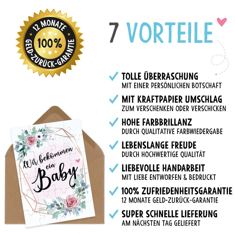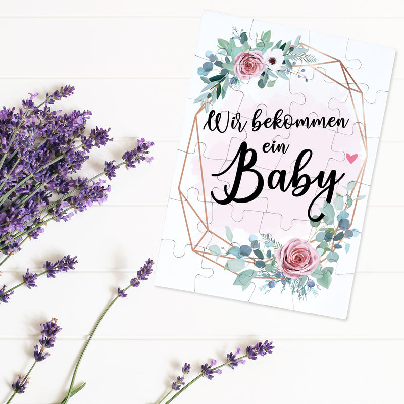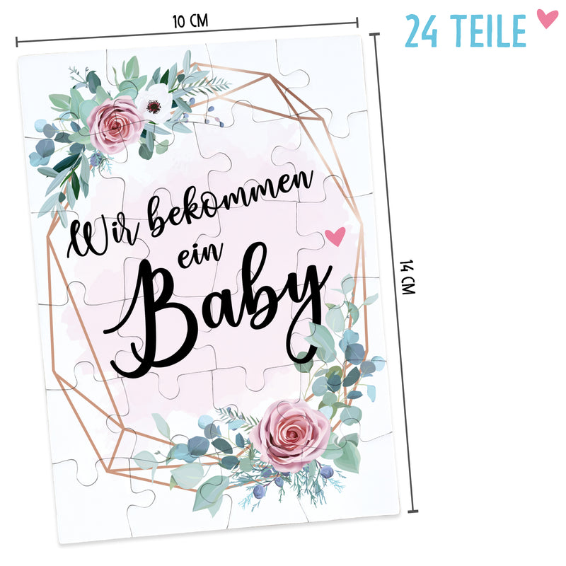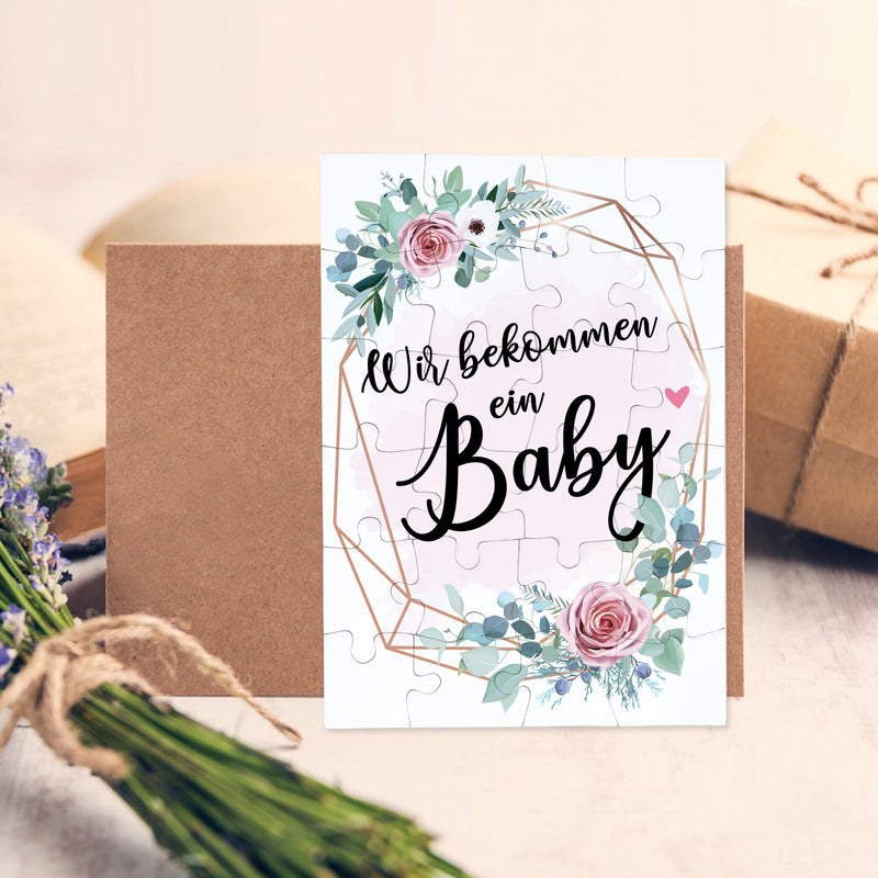 Wir bekommen ein Baby rosa Blumenkranz Puzzle tolle Botschaft mit Brief-Umschlag Geschenke Geschenkideen für die Familie zur Geburt & Schwangerschaft verkünden