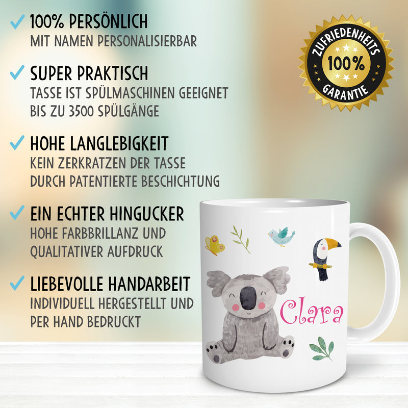Safari Koala Bär Kinder Tasse Personalisiert mit Namen Geschenke Geschenkideen für Kinder Baby Junge Mädchen zum GeburtstagSchulanfang Kindertasse Trinkbecher
