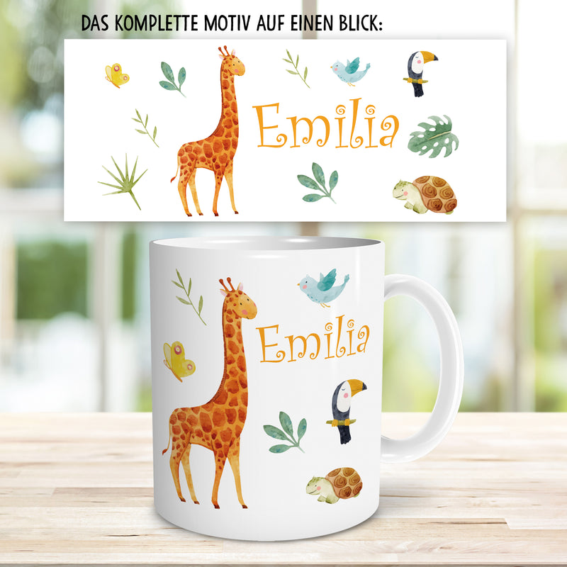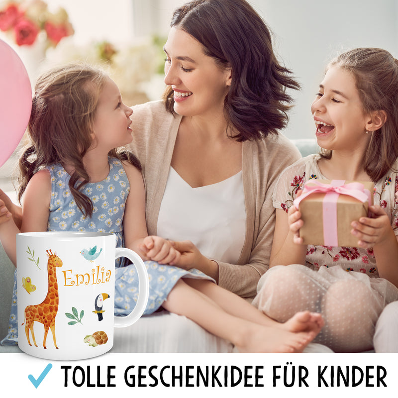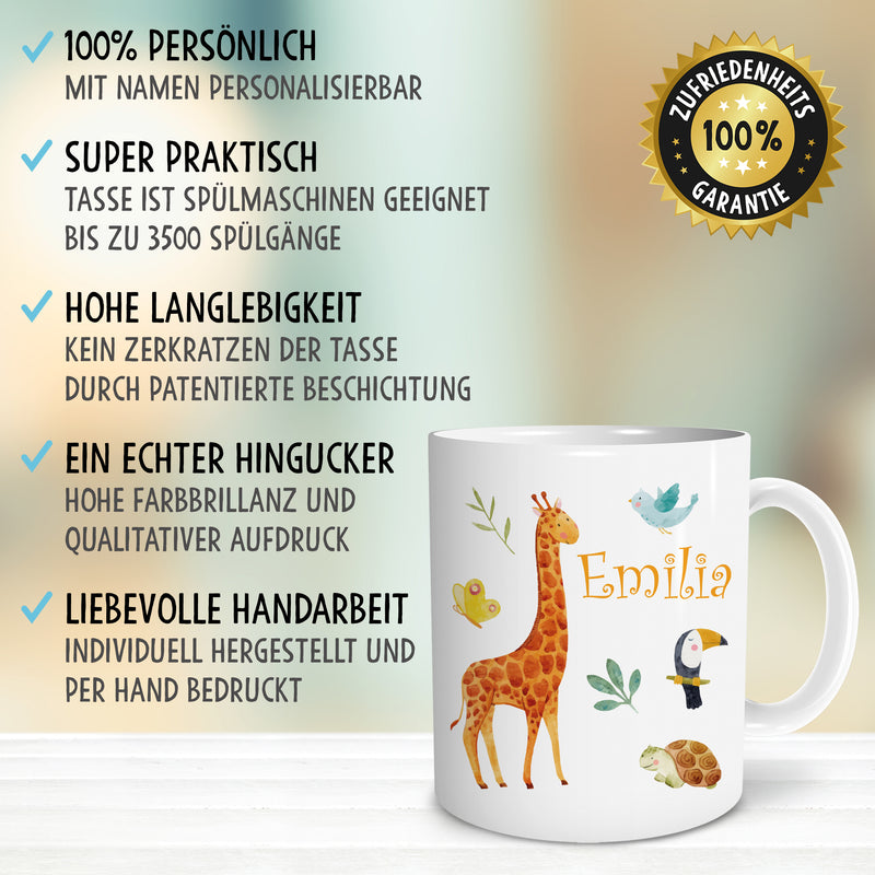 Safari Giraffe Kinder Tasse Personalisiert mit Namen Geschenke Geschenkideen für Kinder Baby Junge Mädchen zum GeburtstagSchulanfang Kindertasse Trinkbecher