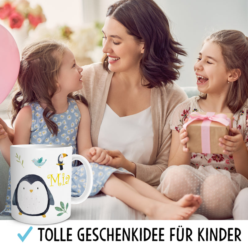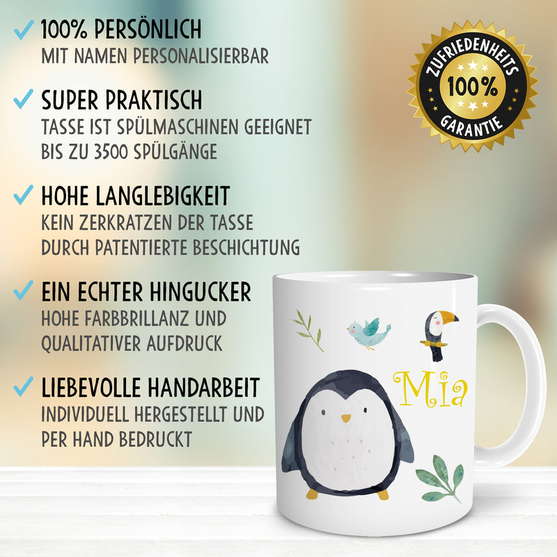 Safari Pinguin Kinder Tasse Personalisiert mit Namen Geschenke Geschenkideen für Kinder Baby Junge Mädchen zum GeburtstagSchulanfang Kindertasse Trinkbecher