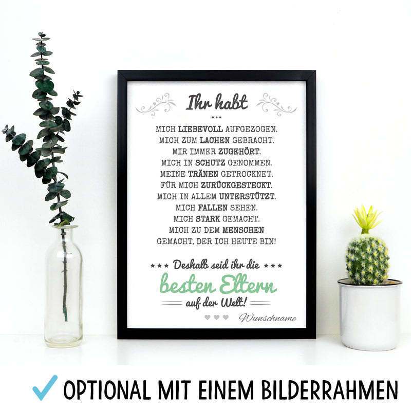 Beste Eltern Bild optional im Holz-Rahmen Personalisiert mit Namen Geschenke Geschenkideen für Deine Eltern zum Geburtstag Weihnachten