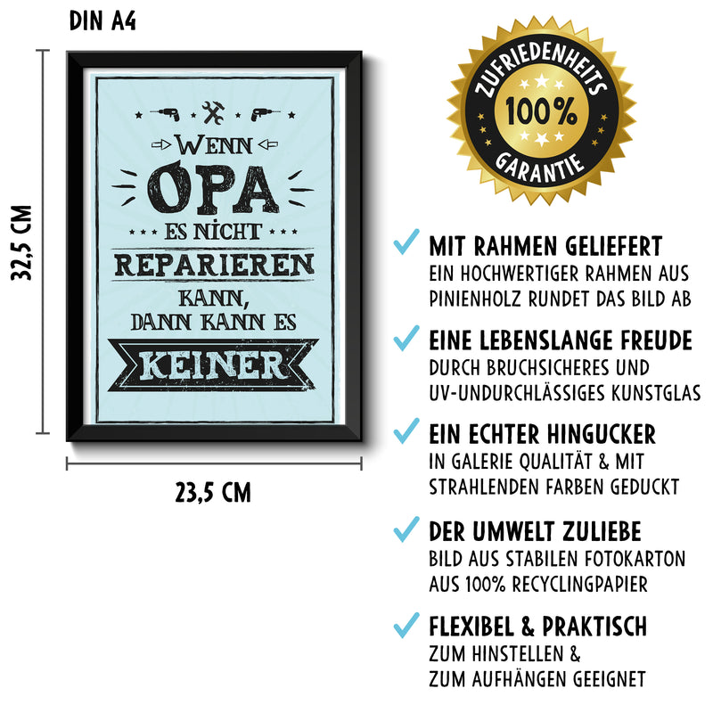 Opa kann es reparieren Bild im Holz-Rahmen A4 Geschenke Geschenkideen für Opa zum Geburtstag Weihnachten