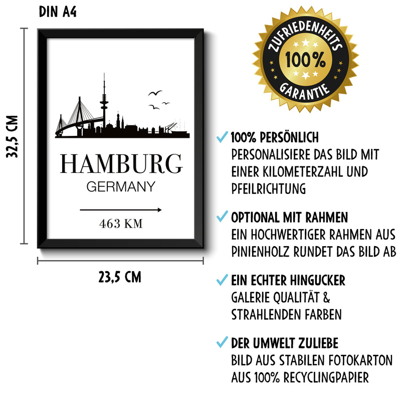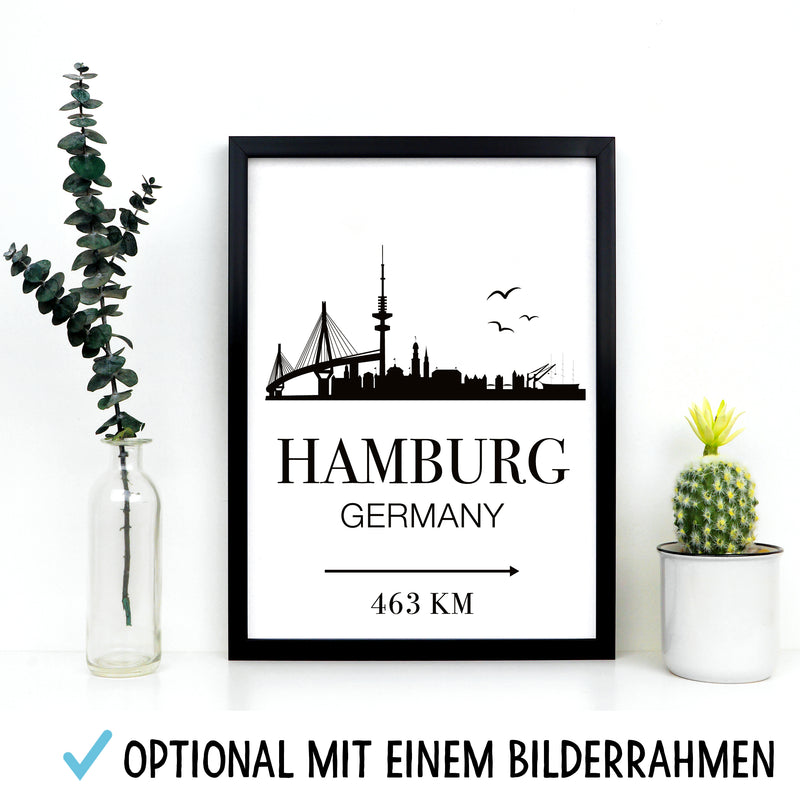 Hamburg Skyline Bild optional im Holz-Rahmen Geschenke Geschenkideen für Hamburger und Hamburg-Liebhaber zum Geburtstag Weihnachten