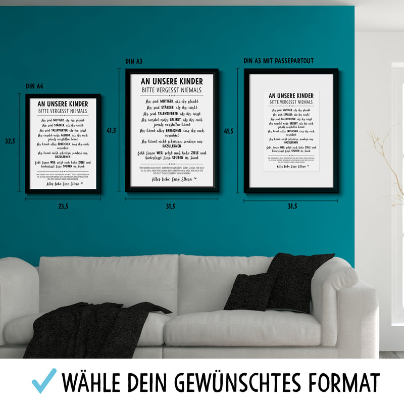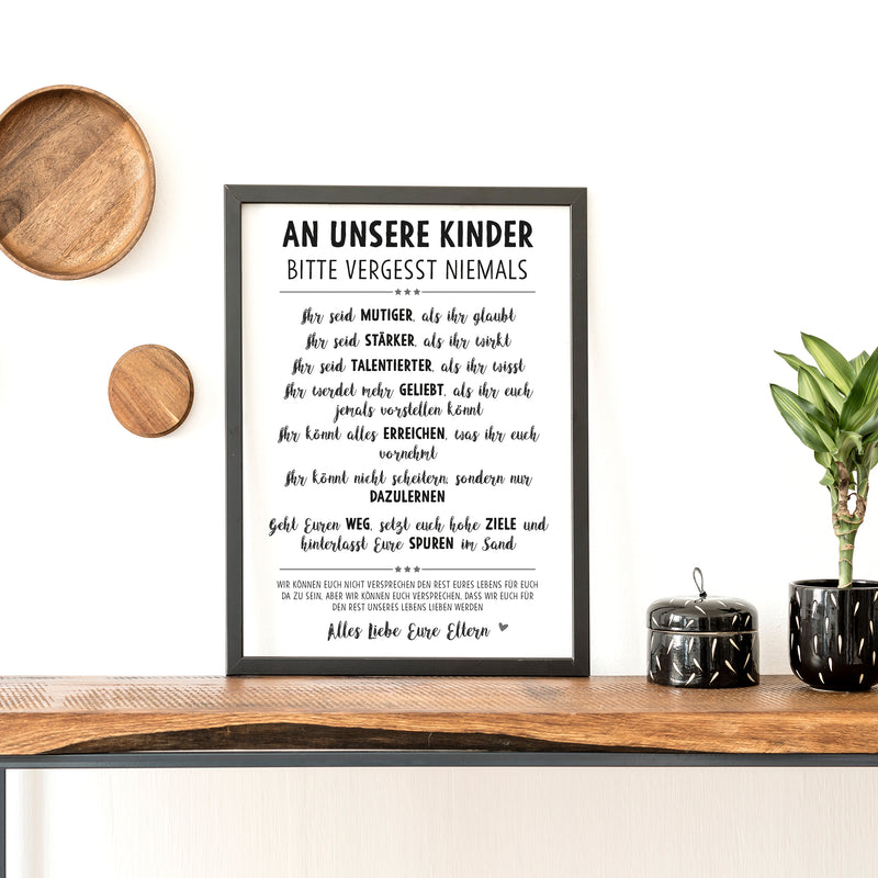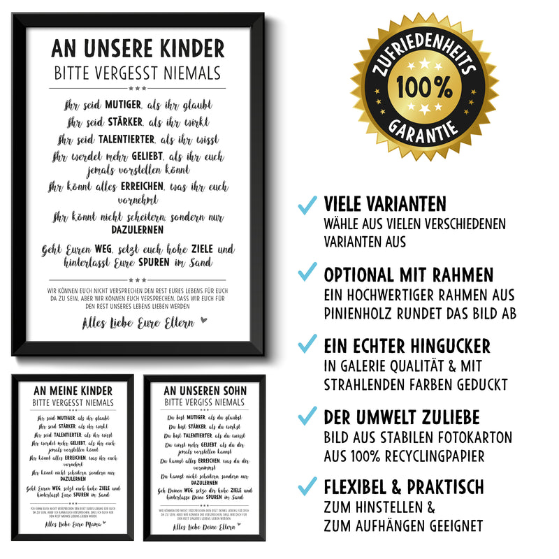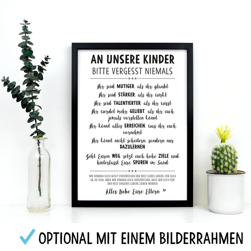 VERGISS NIEMALS Lebensweisheiten Bild optional im Holz-Rahmen Personalisiert mit Namen Geschenke Geschenkideen für Kinder und Baby zum Geburtstag Weihnachten