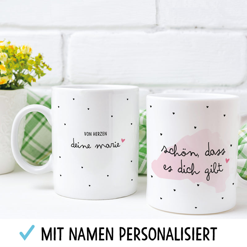 OWLBOOK Schön DASS es Dich gibt große Kaffee-Tasse mit Namen personalisiert im Geschenkkarton schöne Geschenkidee Geschenke für Deine Liebsten