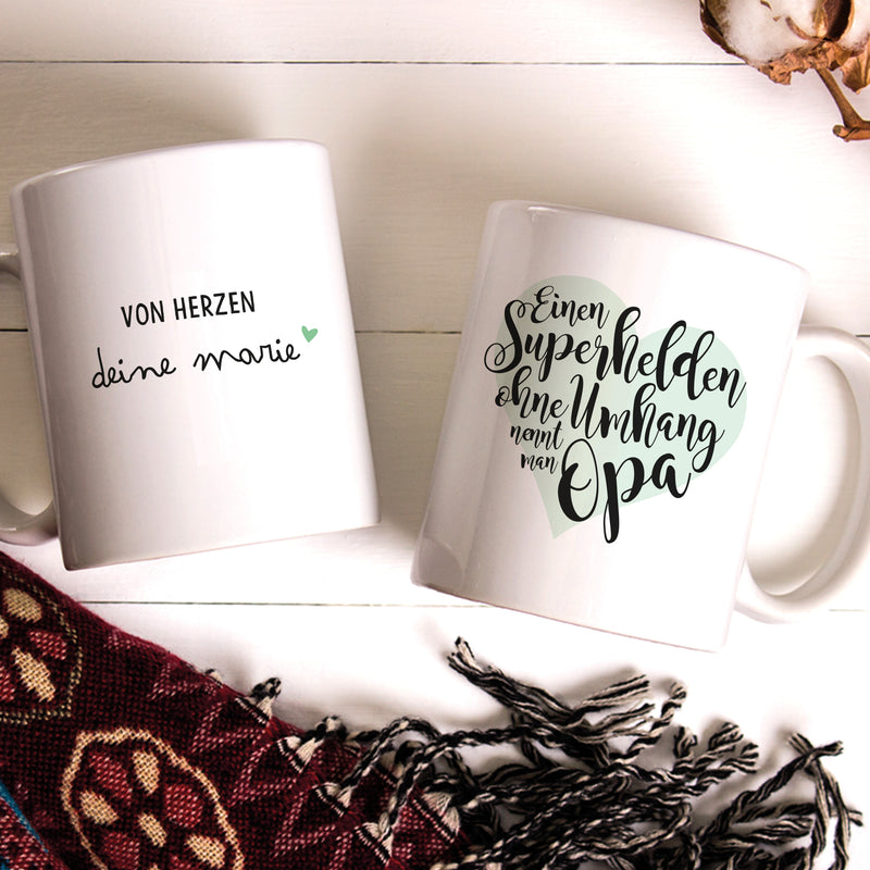 OWLBOOK Superheld Opa große Kaffee-Tasse mit Namen personalisiert im Geschenkkarton schöne Geschenkidee Geschenke für Deinen Großvater