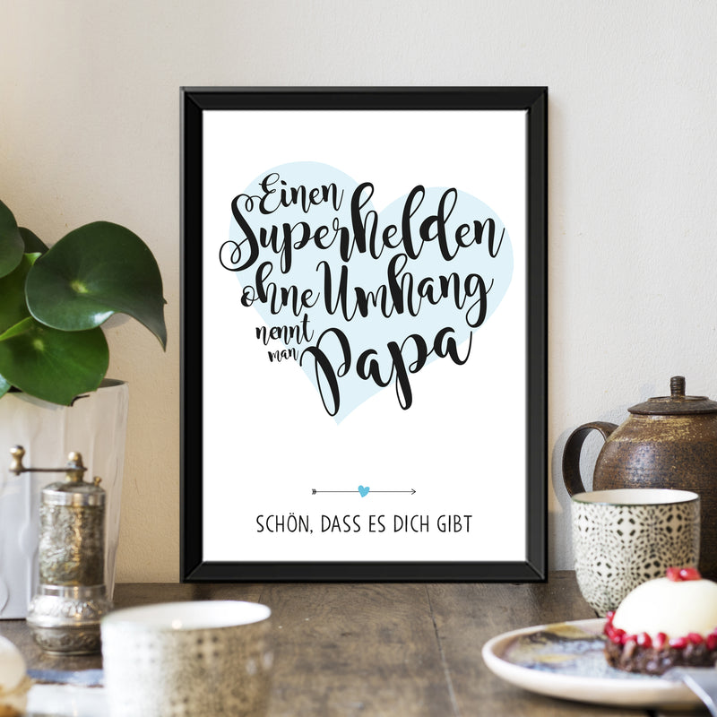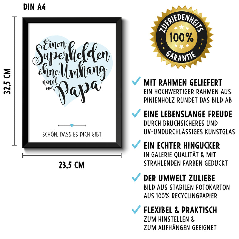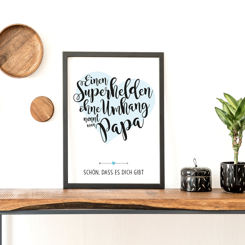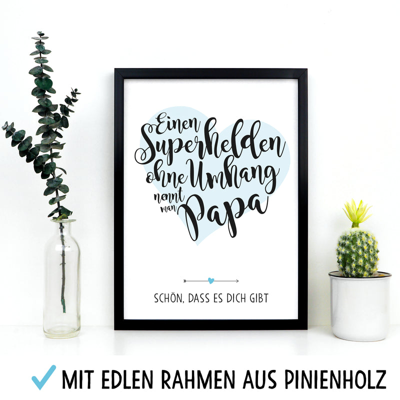 Superheld Papa Bild im Holz-Rahmen A4 Geschenke Geschenkideen für Papa zum Geburtstag Weihnachten