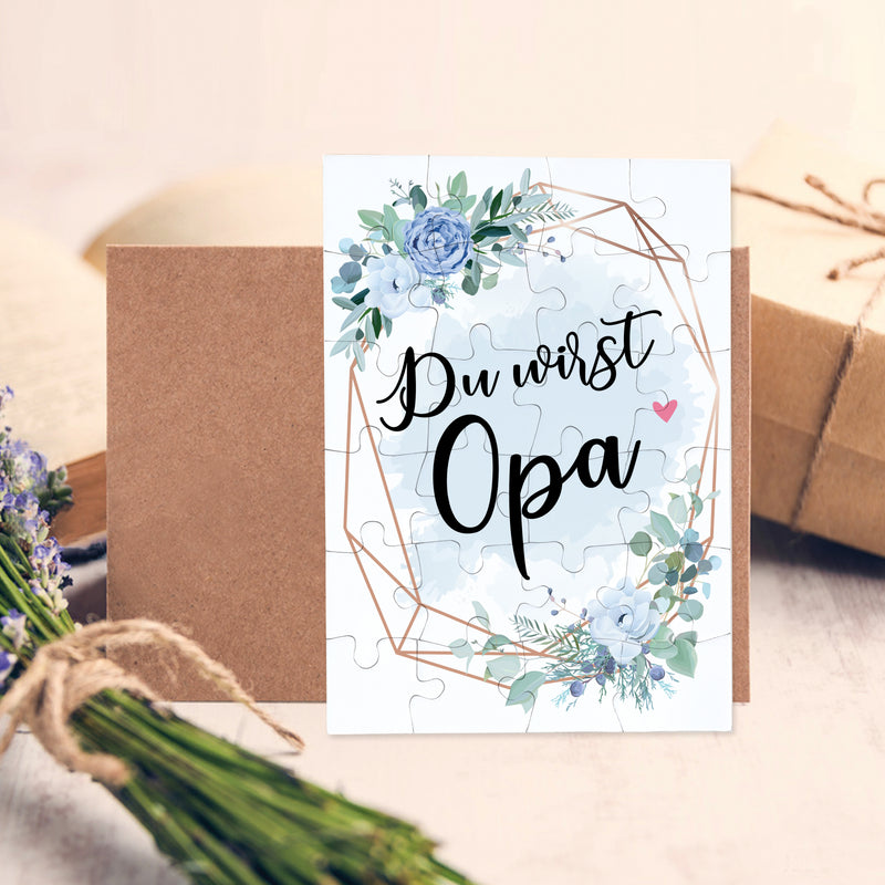 Du wirst Opa blauer Blumenkranz Puzzle tolle Botschaft mit Brief-Umschlag Geschenke Geschenkideen für die Familie zur Geburt & Schwangerschaft verkünden