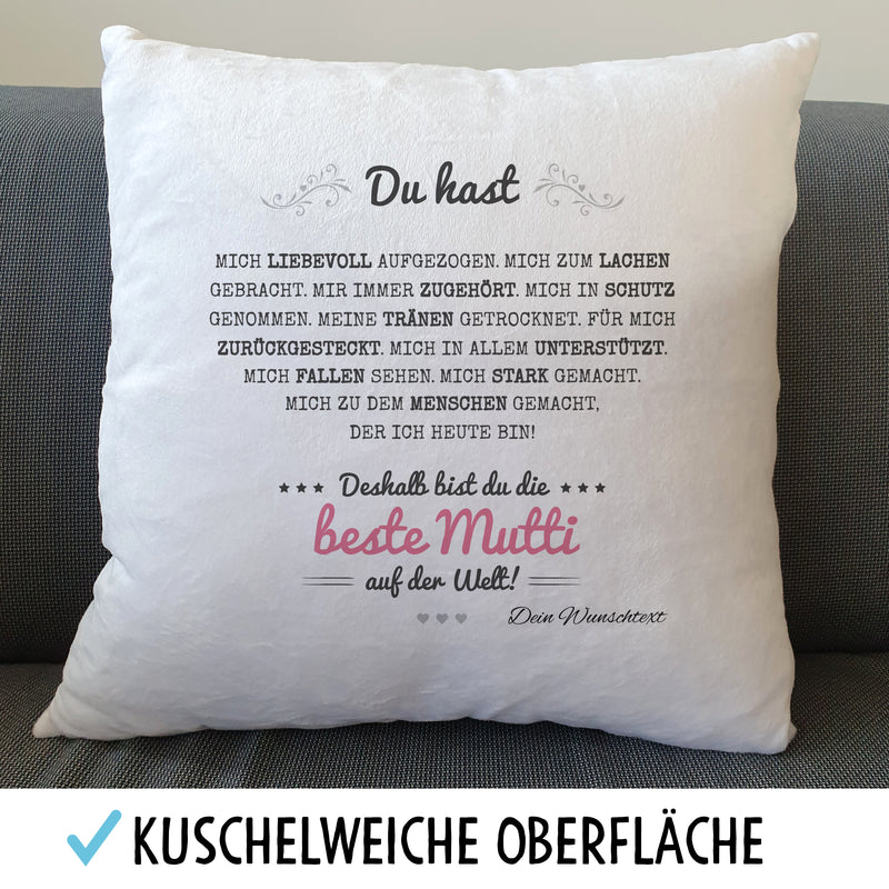 Beste Mutti Flauschiges Kissen mit Spruch Personalisiert mit Namen Geschenke Geschenkideen für Mama zum Geburtstag Muttertag
