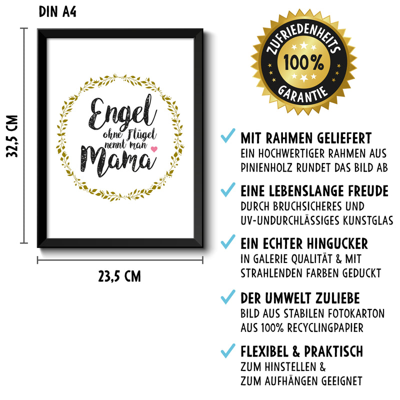 Engel ohne Flügel ohne Flügel nennt man Mama Bild im Holz-Rahmen A4 Geschenke Geschenkideen für Mama zum Geburtstag Muttertag
