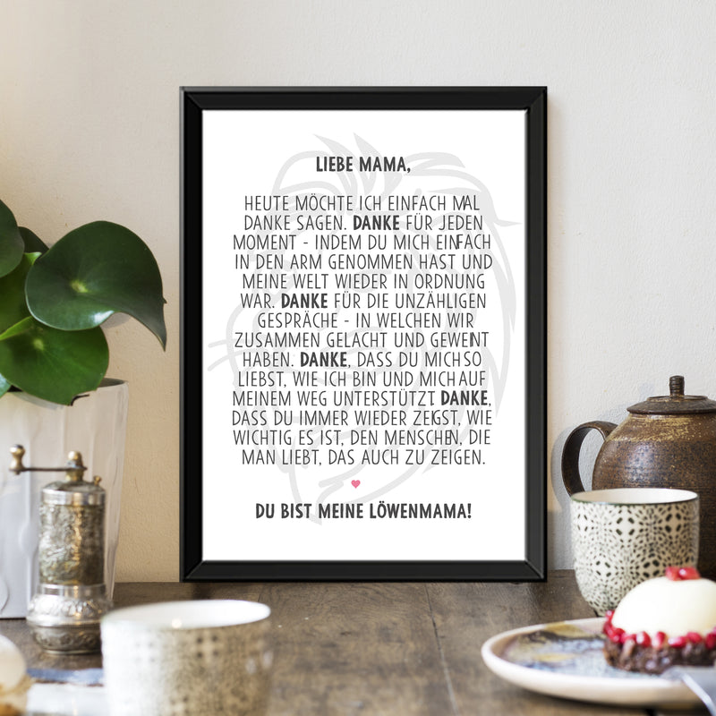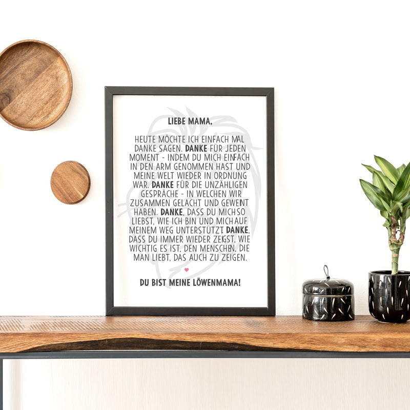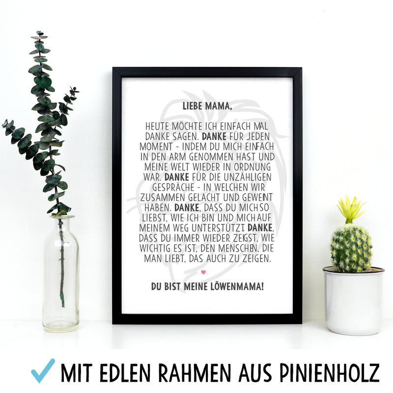 Löwenmama Bild Bild im Holz-Rahmen A4 Geschenke Geschenkideen für Mama als Dankeschön Geschenk zum Muttertag