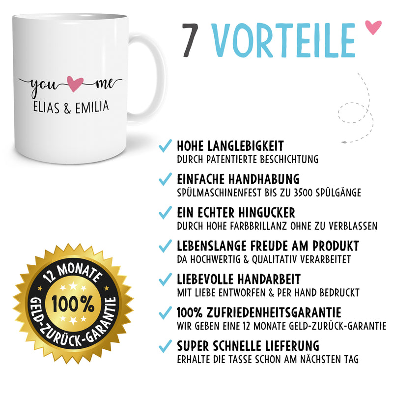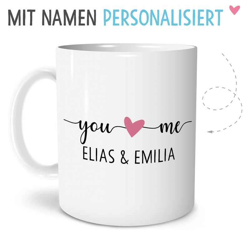 You & Me Große Kaffee-Tasse mit Spruch im Geschenkkarton Personalisiert mit Namen Geschenke Geschenkideen für Freund Freundin Mann und Frau zum Jahrestag Weihnachten