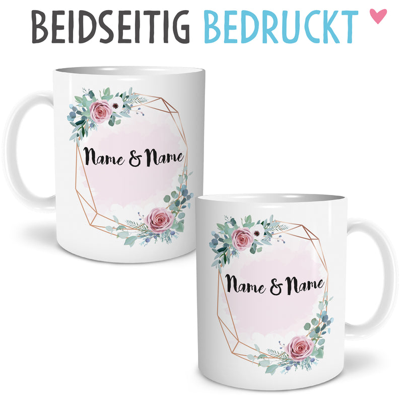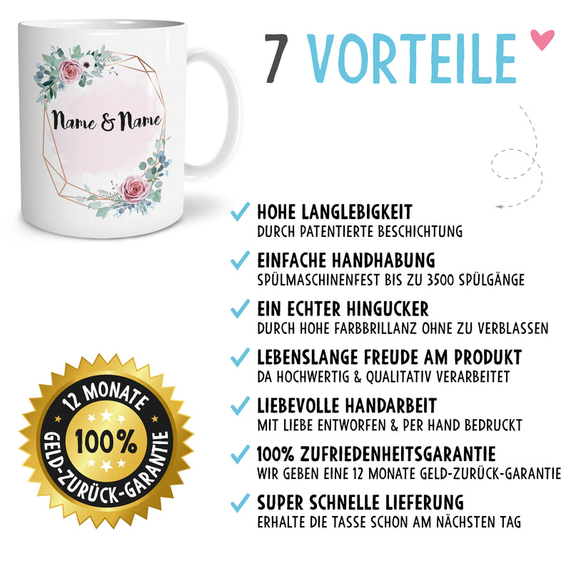 2 Wunschnamen Große Kaffee-Tasse mit Spruch im Geschenkkarton Geschenke Geschenkideen für Freund Freundin Mann und Frau zum Geburtstag