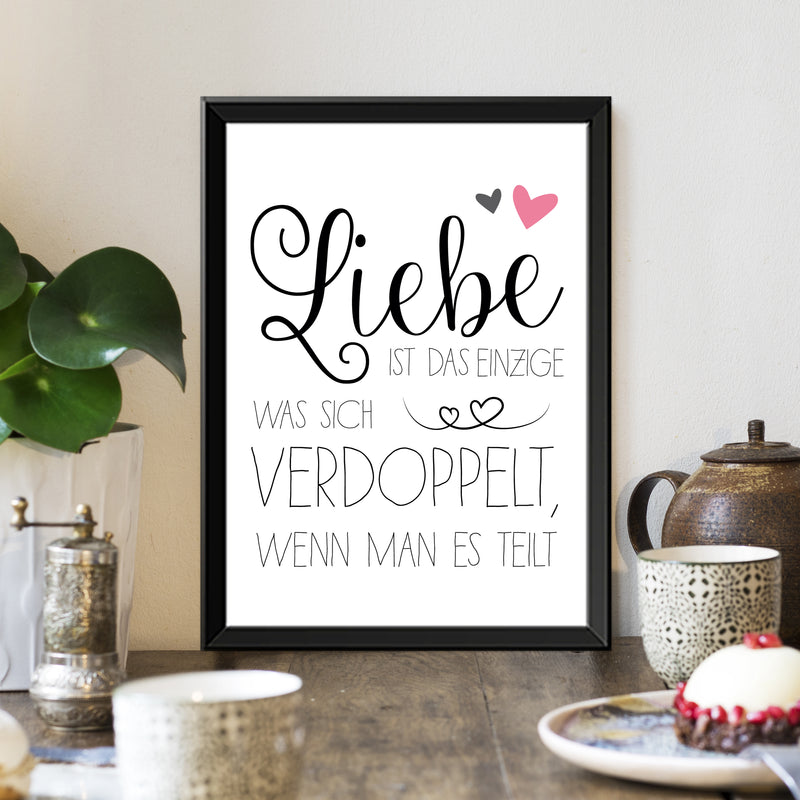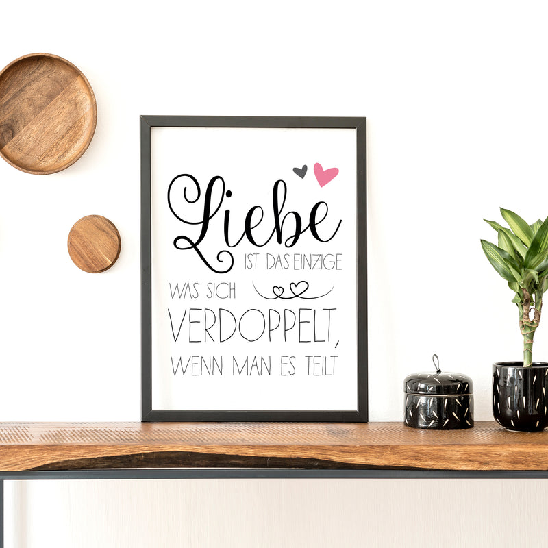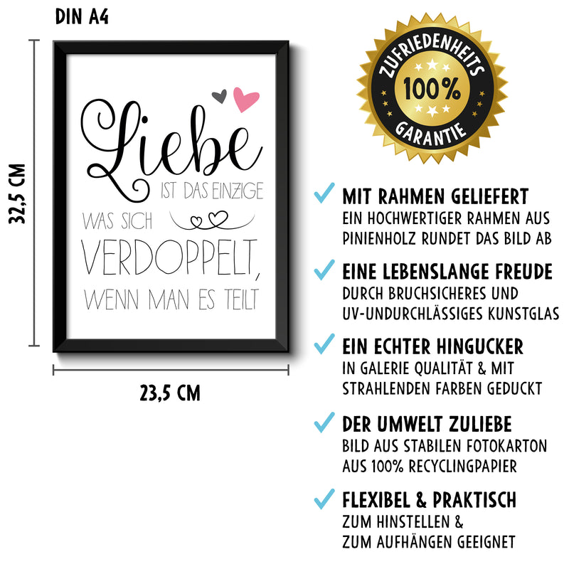 Liebe verdoppelt scih Bild im Holz-Rahmen A4 Geschenke Geschenkideen für Freund Freundin Mann und Frau zum Geburtstag Weihnachten