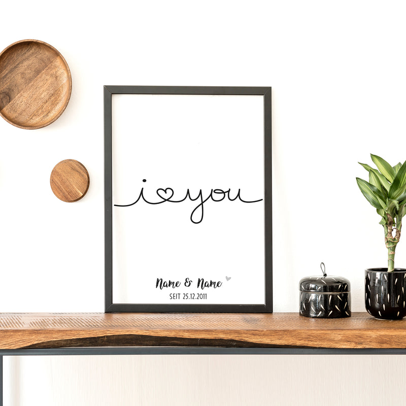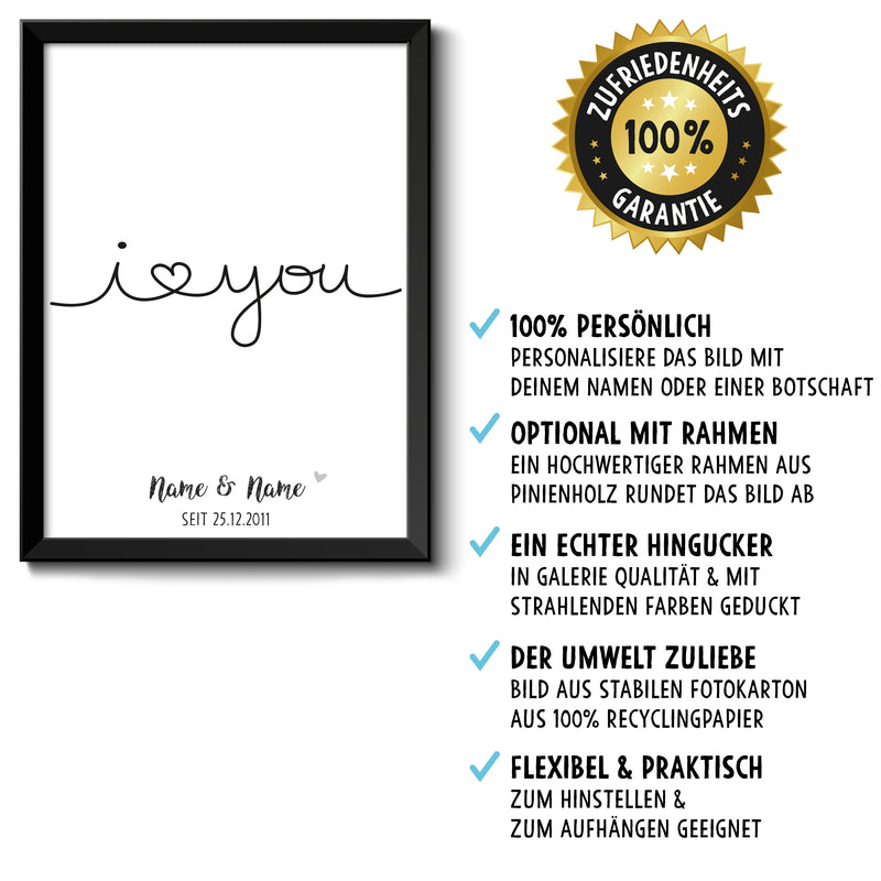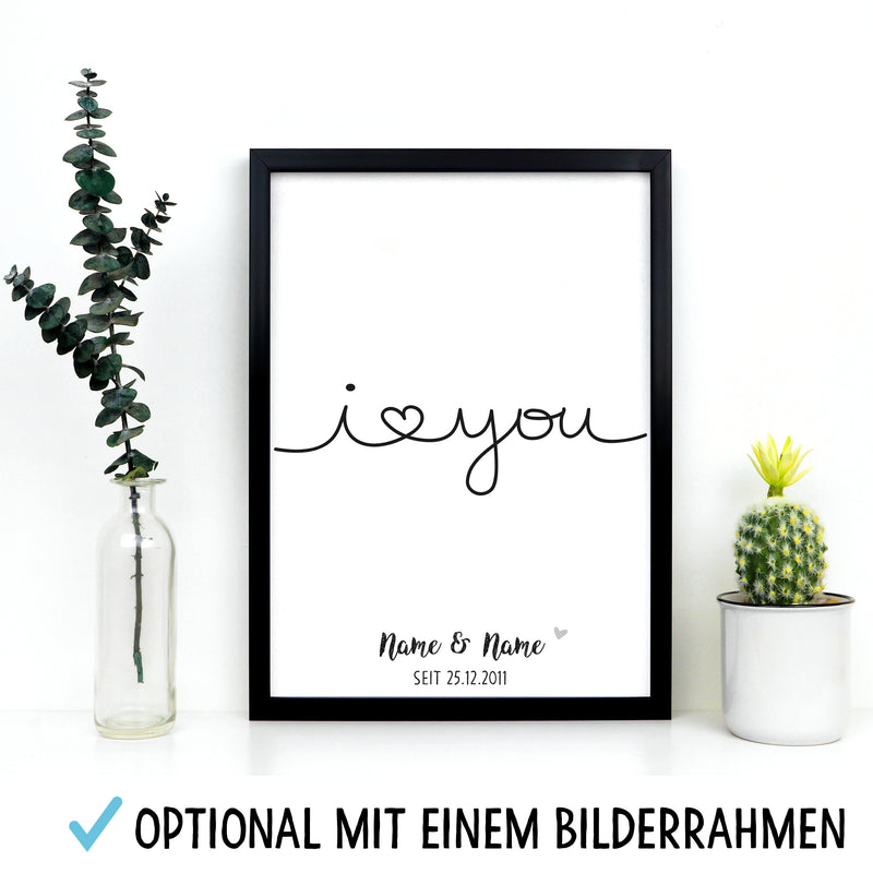 I love you Bild optional im Holz-Rahmen Personalisiert mit Namen Geschenke Geschenkideen für Freund Freundin Mann und Frau zum Geburtstag Weihnachten