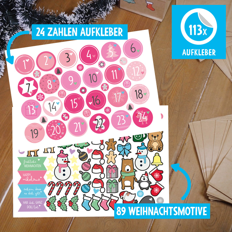 • Adventskalender zum Befüllen Rosa Wort-Zahlen