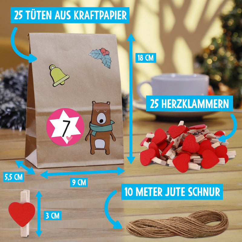 Die Kalendertüten haben die Maße 16 x 9 x 16 cm