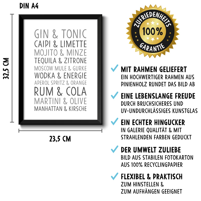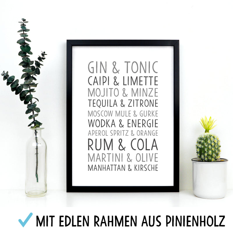 Beliebte Getränke Kompositionen Bild im Holz-Rahmen A4 Geschenke Geschenkideen für Frauen zum Geburtstag