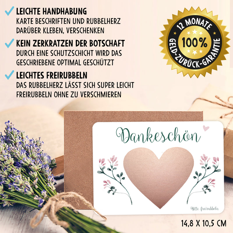 TOP QUALITÄT: Die Rubbelkarte in DIN A6 ist extra dick, hochwertig bedruckt und wird mit einem Kraftkarton Briefumschlag geliefert. Die Ecken sind für eine schönere Optik und Haptik abgerundet. Das Rubbelherz ist in Rosa und lässt sich ganz einfach mit einem Geldstück freirubbeln.