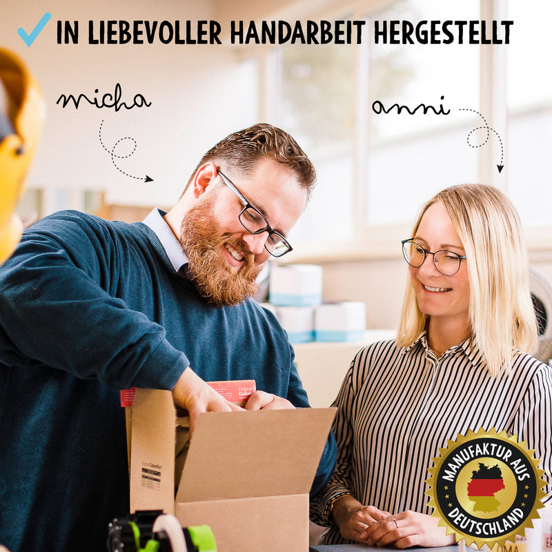 100% ZUFRIEDENHEIT: Das Produkt wird mit viel Liebe in unserer Manufaktur in Deutschland in Handarbeit hergestellt. Die Qualität unserer Produkte liegt uns dabei sehr am Herzen. Solltest Du dennoch unzufrieden sein, erhältst Du Dein Geld zurück!