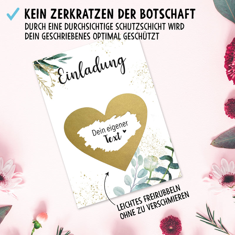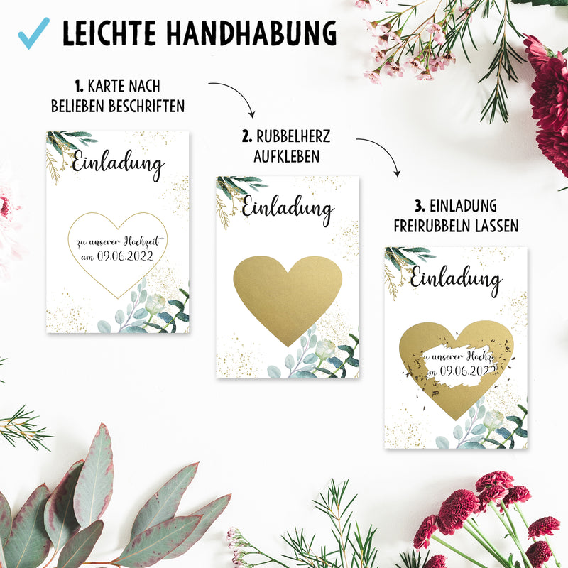 5 Rubbelkarten Einladungen zur Hochzeit Karte mit Rubbelherz Gold Geschenke Geschenkideen als Einladungskarte zur Hochzeit & Verlobung