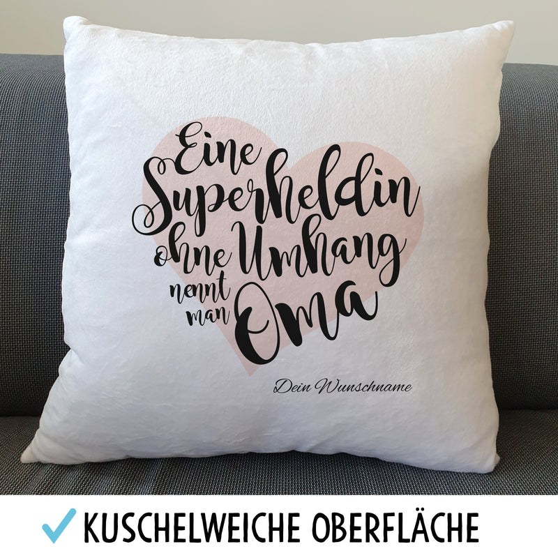 Superheldin Oma Flauschiges Kissen mit Motiv Personalisiert mit Namen Geschenke Geschenkideen für Oma zum Geburtstag Weihnachten Zierkissen mit Füllung