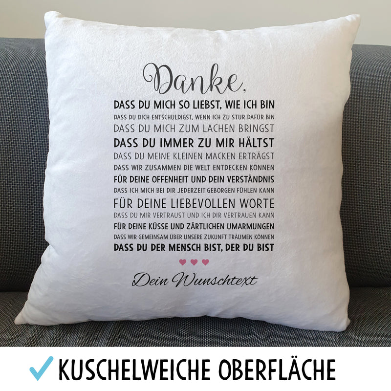 Danke Liebe Flauschiges Kissen mit Sprüchen Liebe Personalisiert mit Namen Geschenke Geschenkideen für Liebespaare zum Geburtstag Zierkissen mit Füllung