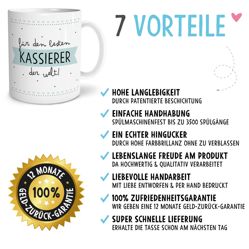 Bester Kassierer Große Kaffee-Tasse mit Spruch im Geschenkkarton Geschenke Geschenkideen für alle Kassierer als Dankeschön