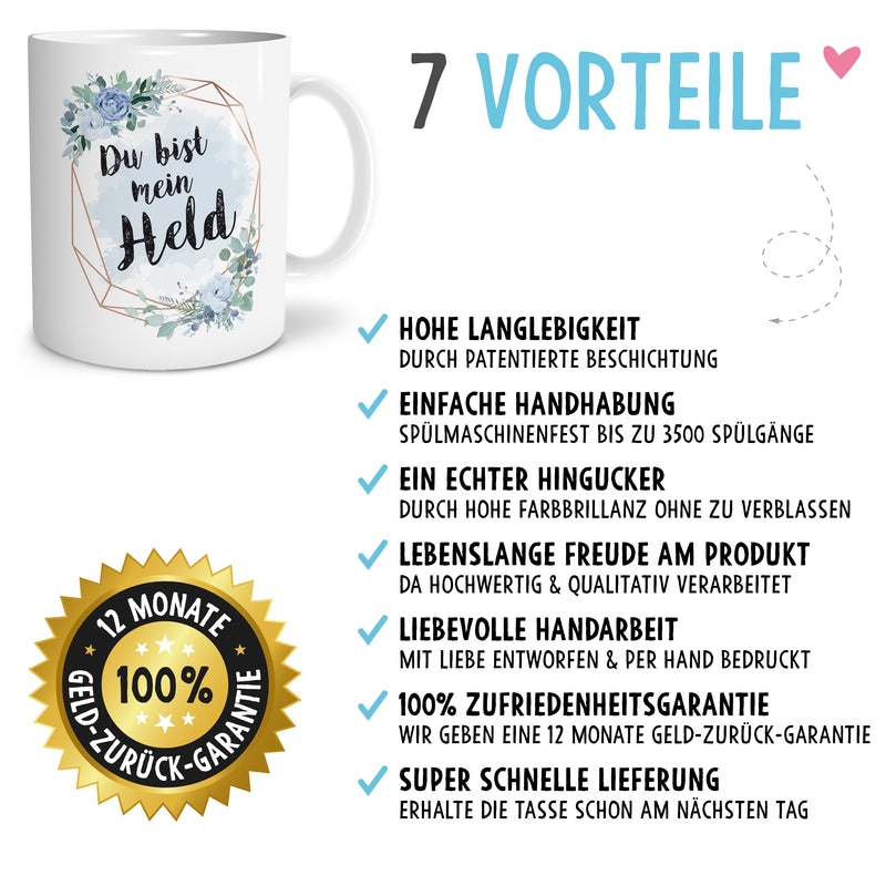 Du bist mein Held Große Kaffee-Tasse mit Spruch im Geschenkkarton Geschenke Geschenkideen für alle Alltagshelden als DankeschönHochzeitstag