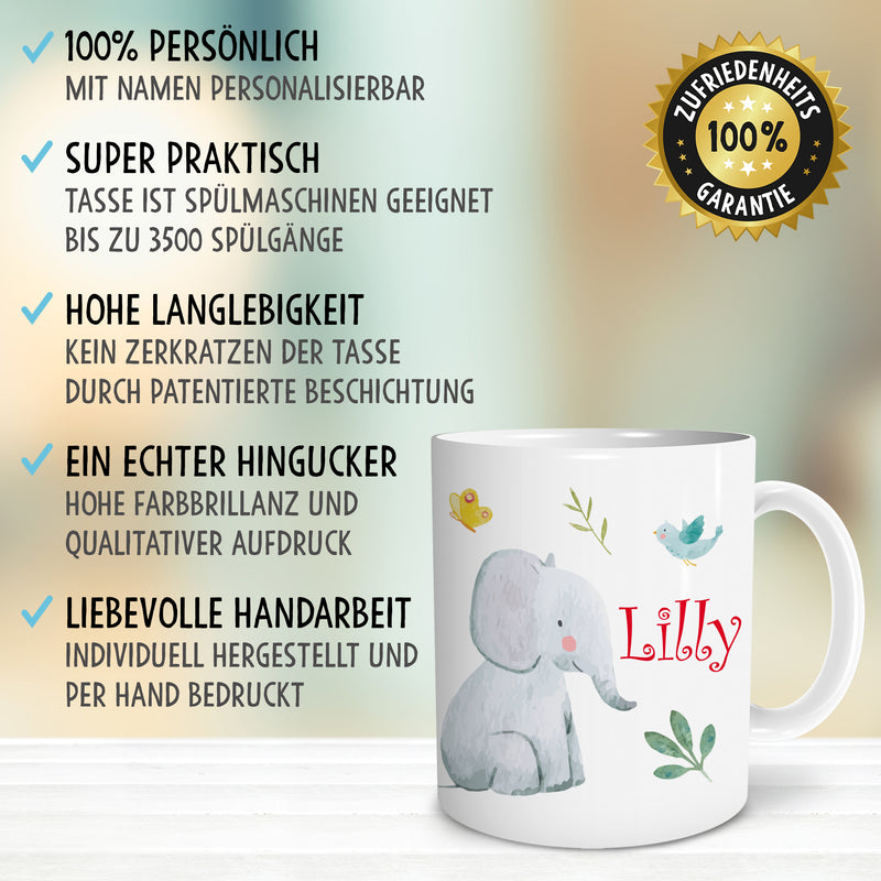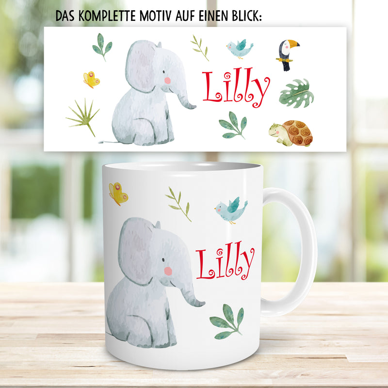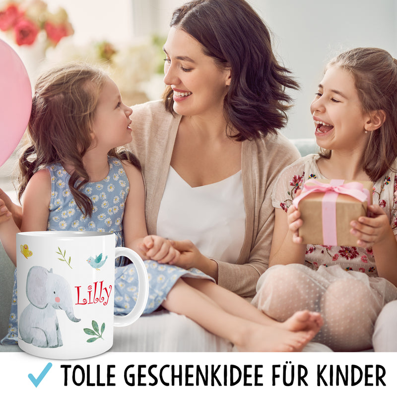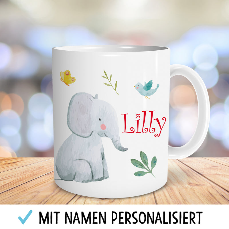 Safari Elefant Kinder Tasse Personalisiert mit Namen Geschenke Geschenkideen für Kinder Baby Junge Mädchen zum GeburtstagSchulanfang Kindertasse Trinkbecher