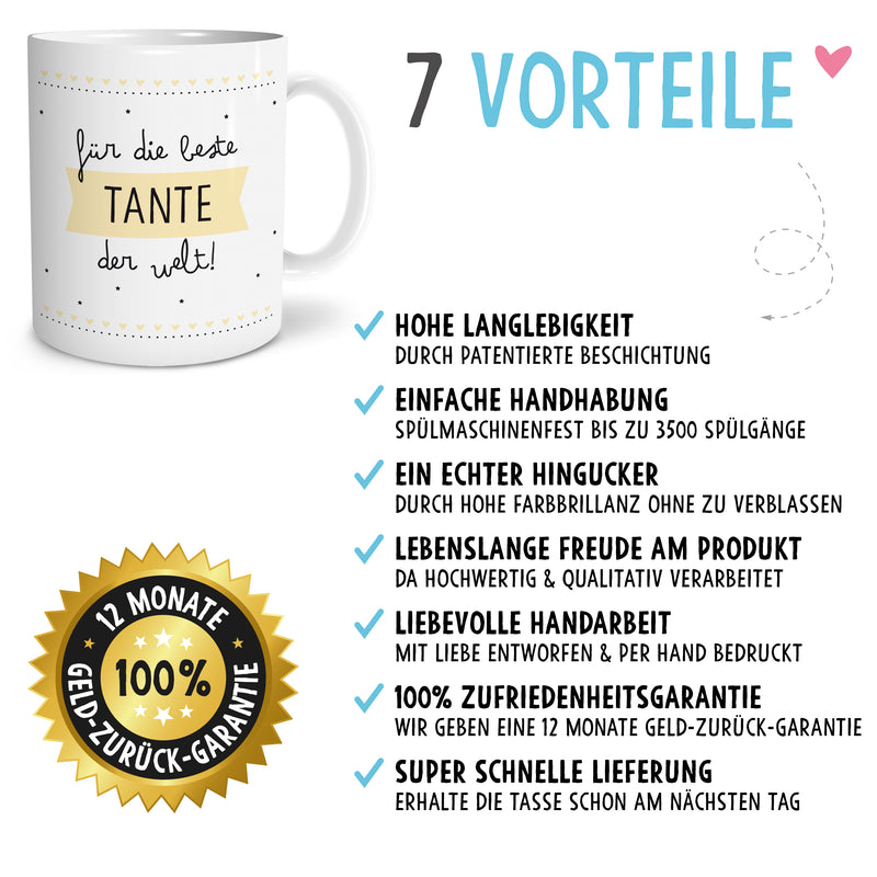 Beste Tante Große Kaffee-Tasse mit Spruch im Geschenkkarton Geschenke Geschenkideen für Tante zum Geburtstag