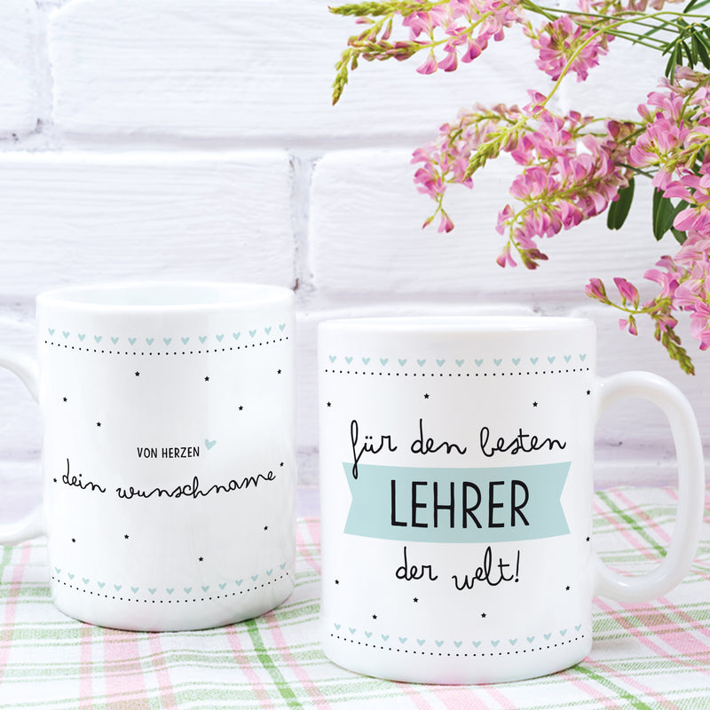 Bester Lehrer Große Kaffee-Tasse mit Spruch im Geschenkkarton Personalisiert mit Namen Geschenke Geschenkideen für Erzieher-in zum Abschied Weihnachten
