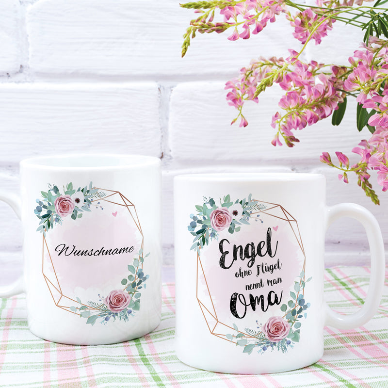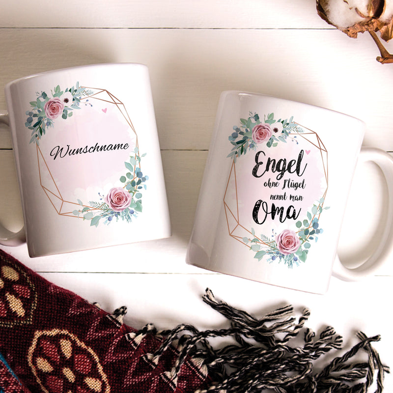 Engel Oma Große Kaffee-Tasse mit Spruch im Geschenkkarton Personalisiert mit Namen Geschenke Geschenkideen für Oma zum Geburtstag