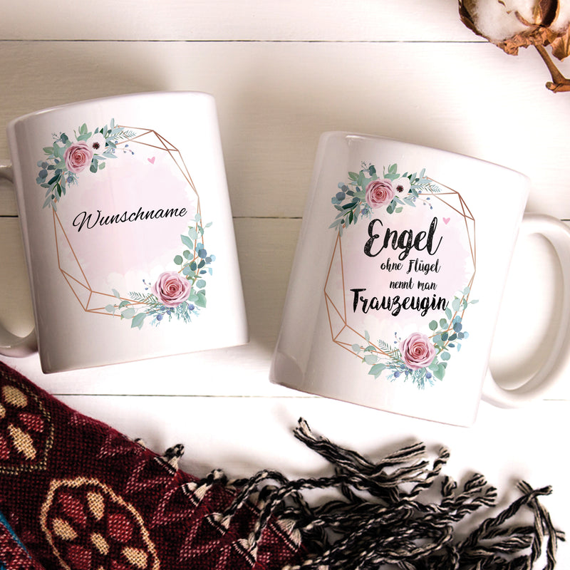 Engel Trauzeugin Große Kaffee-Tasse mit Spruch im Geschenkkarton Personalisiert mit Namen Geschenke Geschenkideen für Trauzeugin zum Geburtstag Weihnachten