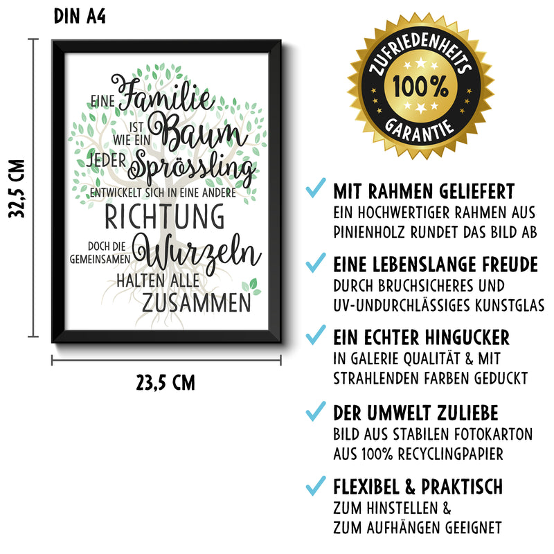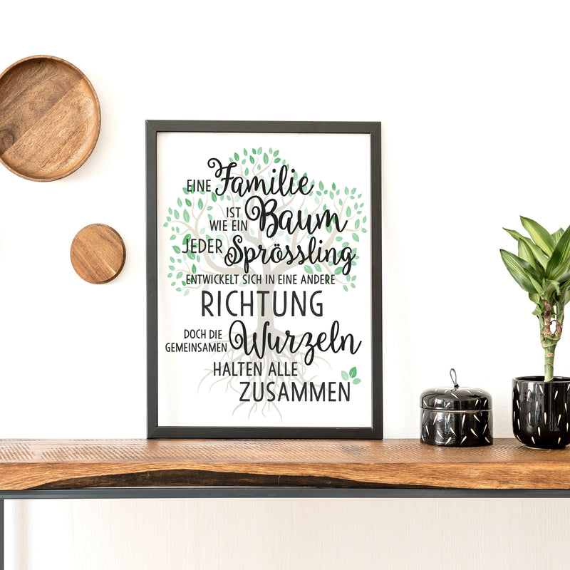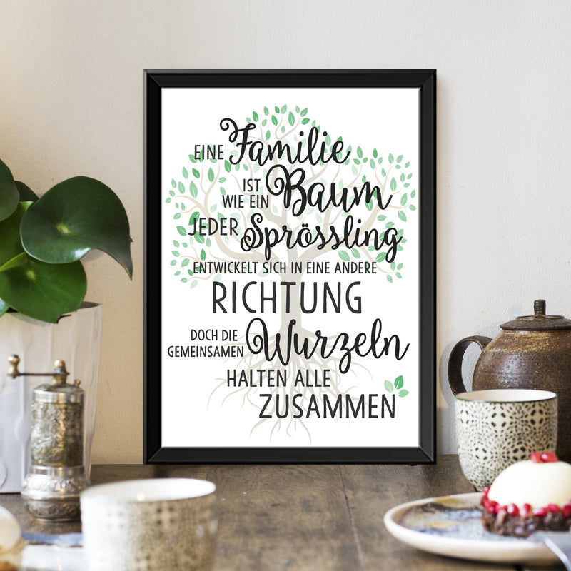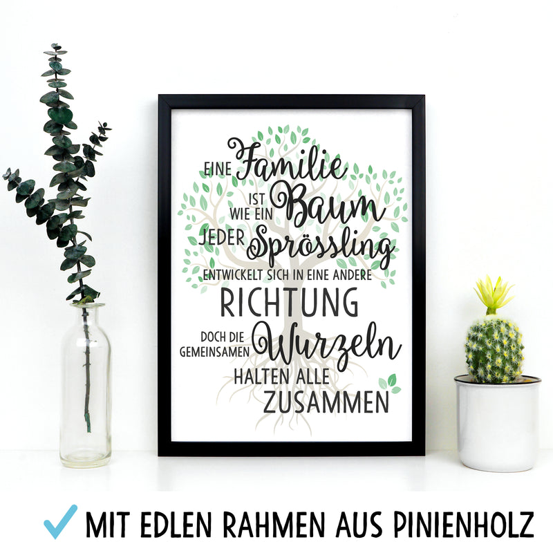 Familie ist wie ein Baum Bild im Holz-Rahmen A4 Geschenke Geschenkideen für die Familie zum Geburtstag Weihnachten